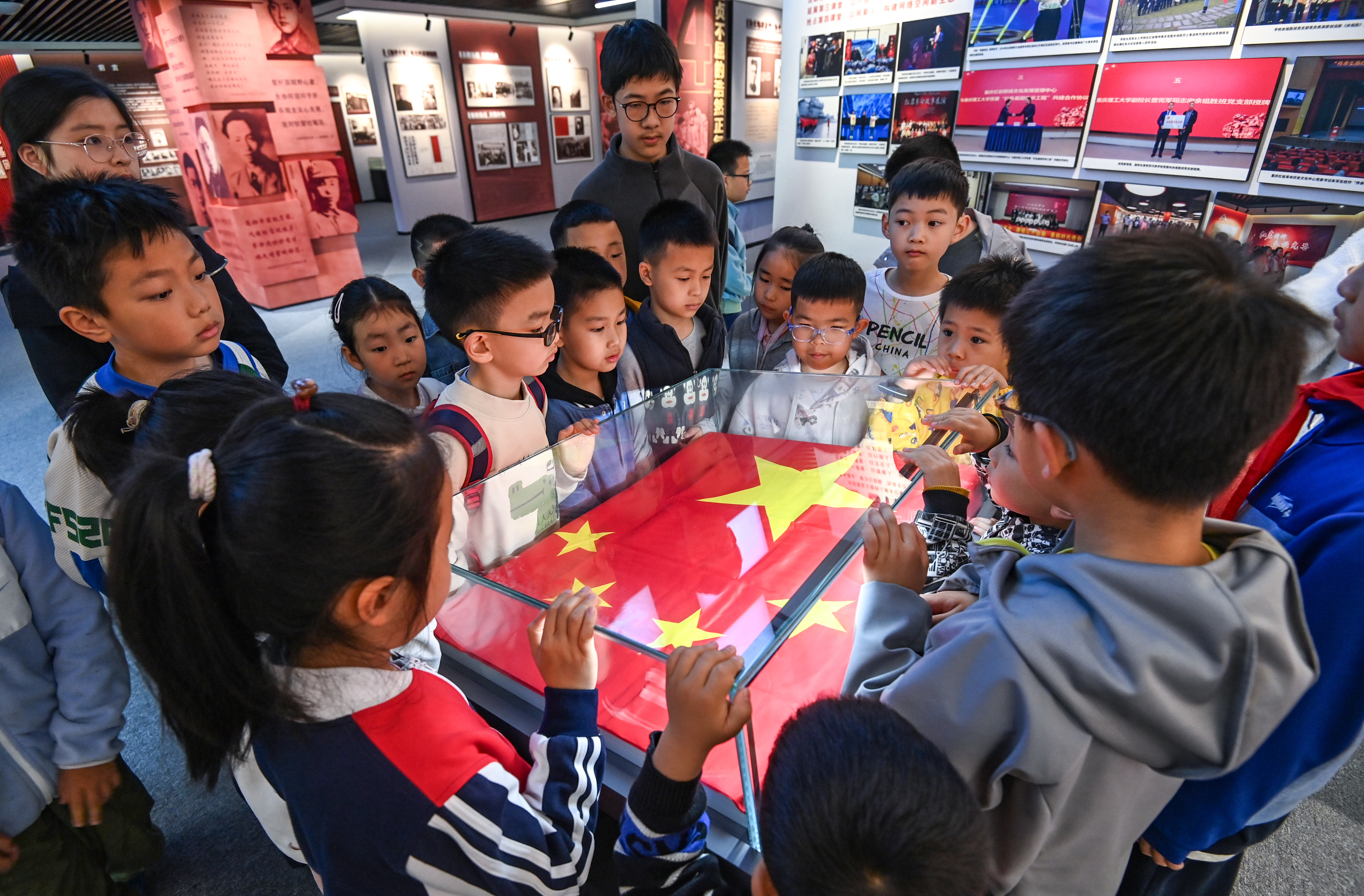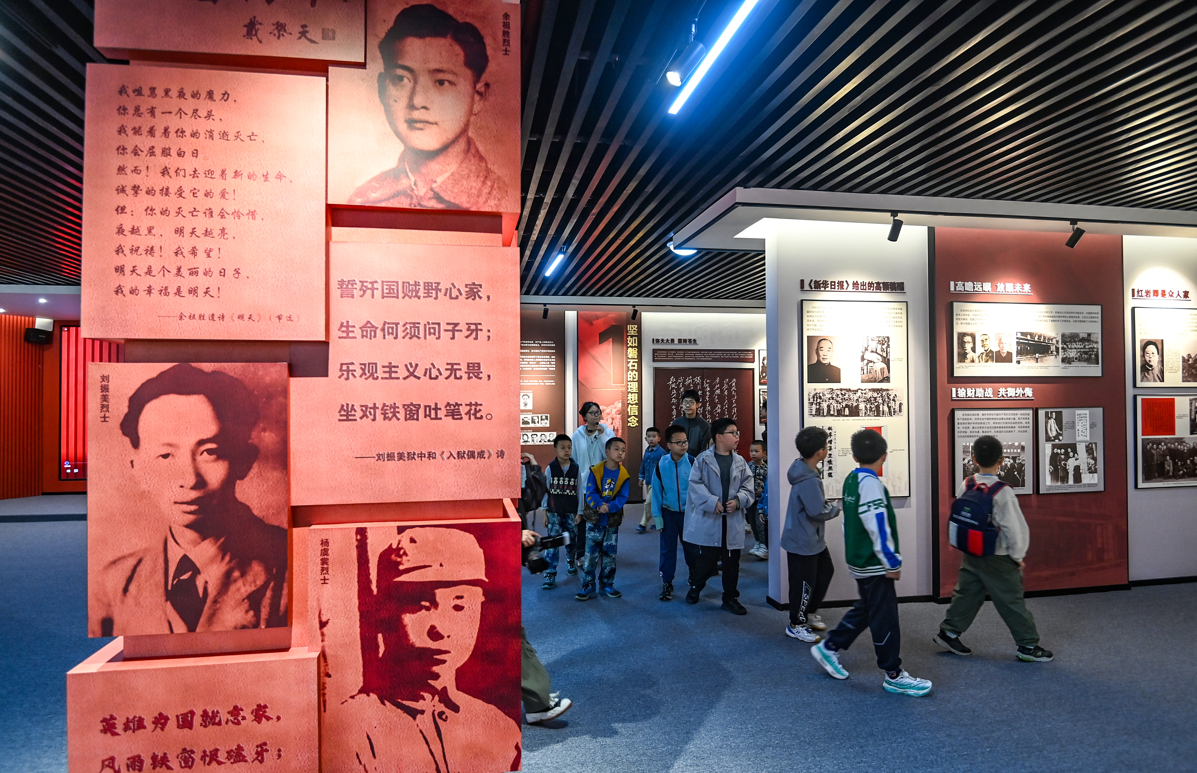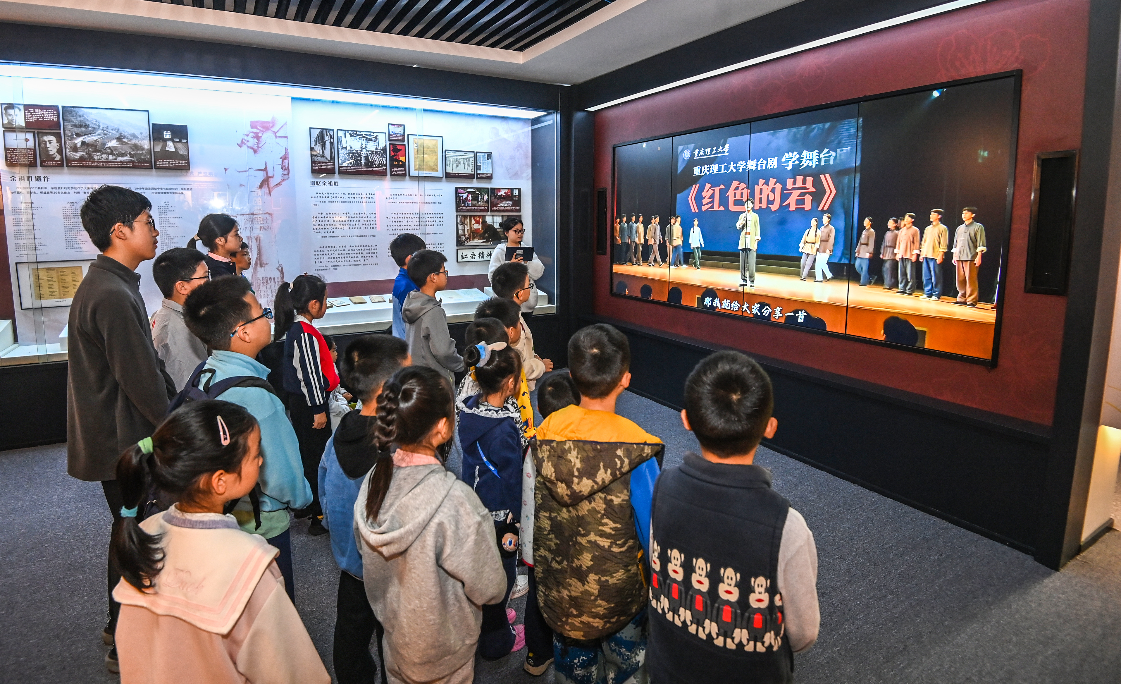 ▲重庆理工大学红岩精神展览馆暨余祖胜烈士事迹陈列室,孩子们正在参观学习。记者 郑宇 摄