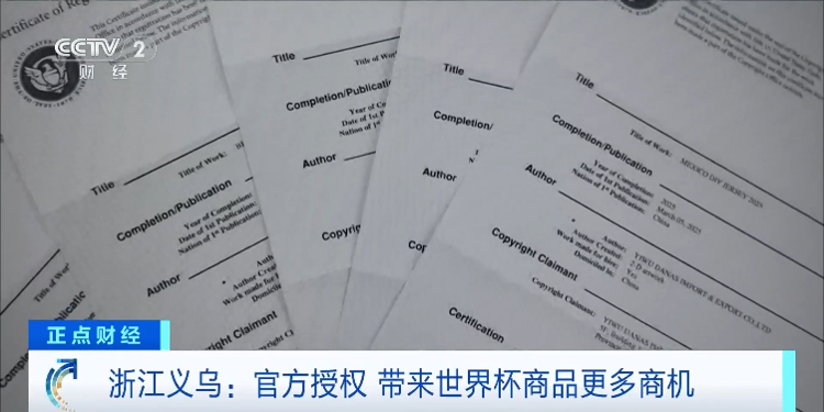 近年来,义乌商户在不断开发产品的同时,也不断加强对版权的重视。深耕球迷服多年的温从见,如今手握39项专利、32项商标,今年世界杯期间,他也成功拿下一笔授权订单。