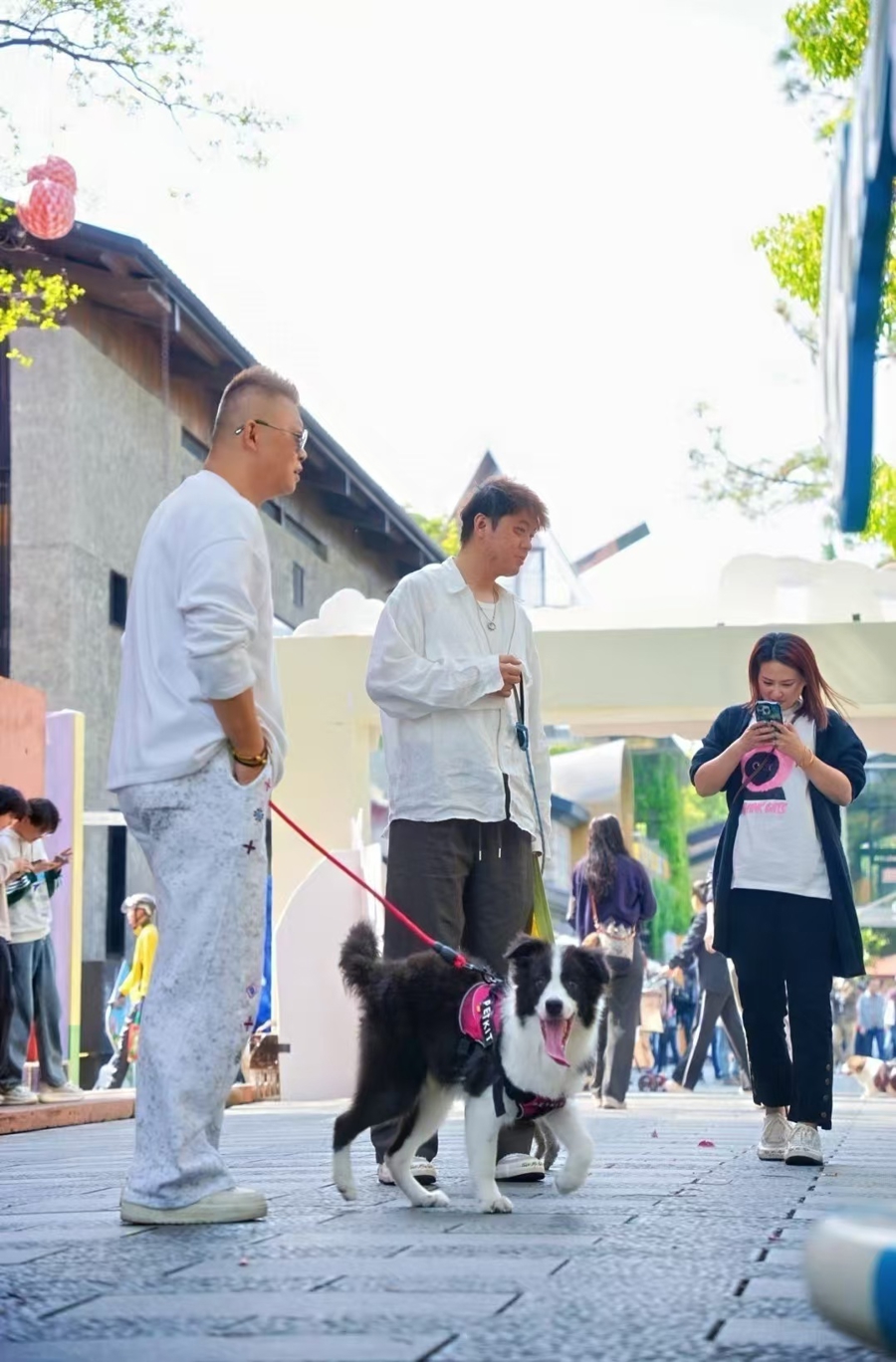 “感觉非常有春天的气息,特别适合带着狗狗来拍照。”当天,不少宠物主人特意带着精心打扮的萌宠来参加活动。活动当天,EKA天物到处洋溢着满满的活力,软萌的柯基、乖巧的柴犬、可爱的比熊……各路“毛孩子”在主人的陪伴下陆续到场,或摇着尾巴撒娇,或好奇打量四周,每一个瞬间都透着治愈的美好。借着春日盛景与花卉盛会,在玫瑰花海装扮的EKA天物空间,现场通过设置一系列萌宠造型美陈,创新搭建起“花卉景观+萌宠互动+生活市集”的三维融合场景。活动还特别设置一条完整的遛宠打卡动线和全天多次的萌宠春日巡游,沿途结合春日花艺与艺术雕塑,生动展现了一番与宠共游的温馨场景。